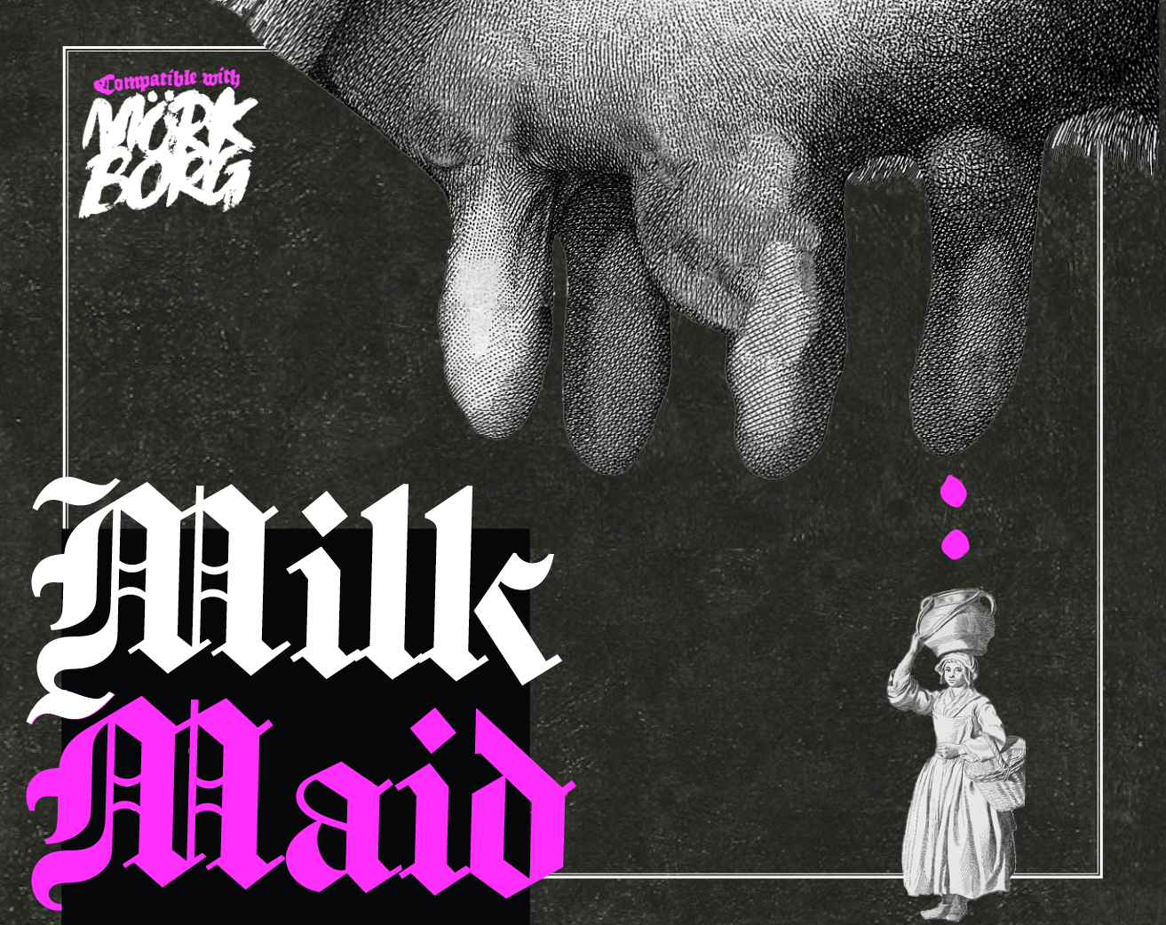 Milk Maid is an independent production by Melfy Games and is not affiliated with Ockult Örtmästare Games or Stockholm Kartell. It is published under the MÖRK BORG Third Party License.